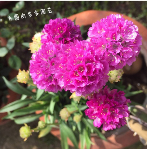 特征:宿根草花,植株低矮,叢生狀,株高20-30厘米。葉基生,葉線狀長劍形,花為粉紅色至玫瑰紅色,全緣、深綠色;春季開花,頭狀花序頂生?;ㄇo細(xì)長,小花聚生于花莖頂端。呈半圓球形,紫紅色,花莖約3厘米。